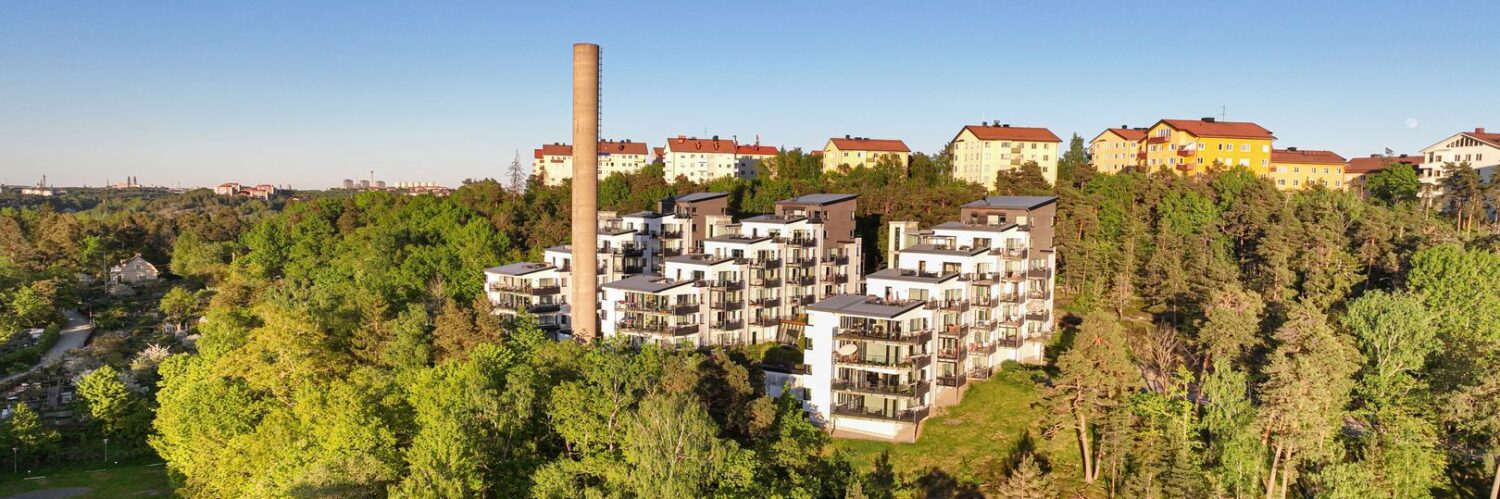 Ett spännande inslag i området är den höga skorstenen från det gamla reningsverket, som fortfarande står kvar som ett historiskt landmärke. Dessutom används det tidigare bergrummet idag som ett praktiskt och säkert bilgarage för de boende. Kombinationen av modern arkitektur, historisk förankring och naturnära läge gör Brf Eolshäll till ett mycket attraktivt boende.